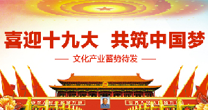 喜迎十九大 共筑中国梦 回首过去,我国文化产业实现了跨越式发展。展望未来,让我们在以习近平同志为核心的党中央坚强领导下,进一步深化文化体制改革、加快文化产业发展,不断取得新成就,为建设社会主义文化强国,全面建成小康社会,实现中华民族伟大复兴的中国梦做出新贡献,以优异成绩迎接党的十九大胜利召开!